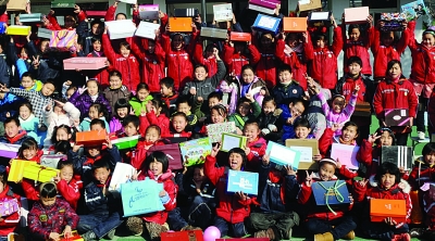 ????“鞋盒禮物”,在全世界100多個(gè)國(guó)家都舉辦過,本著互動(dòng)、打破雙方隔閡的理念,倡導(dǎo)富裕家庭的孩子們自愿捐出自己的零用錢,和爸爸媽媽們一起為需要的孩子們準(zhǔn)備禮物,并用鞋盒包裝起來送給困難家庭的孩子。在七橋小學(xué)的操場(chǎng)上,高高的一摞精心打扮過的“鞋盒禮物”堆在孩子們面前,有的還用水彩筆歪歪扭扭地寫著贈(zèng)送祝語。這些都是南京市40多所中小學(xué)孩子準(zhǔn)備的一部分。