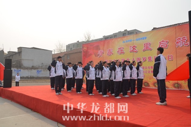 ????周口市中學(xué)生14歲集體生日慶?;顒?dòng)在《告別童年》的朗誦聲中開始?!肚啻焊卸髌?、《家長寄語》和《老師寄語》鼓舞學(xué)生用責(zé)任導(dǎo)航人生,用青春放飛理想?;顒?dòng)中,愛心企業(yè)代表劉光中董事長向?qū)W生們贈(zèng)送了生日蛋糕,市政協(xié)副主席楊珺與學(xué)生代表一起切生日蛋糕,并和一千多名中學(xué)生許下了青春的愿望。在中學(xué)生十四歲集體生日慶祝過程中,市人大副主任、市總工會(huì)主席游保峰為該?!扒嗄曛驹刚叻?wù)隊(duì)”授旗。