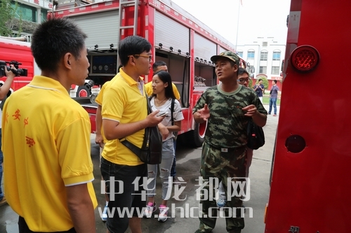 ????當(dāng)日上午10時(shí)30分,網(wǎng)友記者們一行來到了周口市公安消防支隊(duì)特勤中隊(duì)。消防官兵首先向網(wǎng)友講解了生活中的消防安全小常識(shí)和注意事項(xiàng),介紹了滅火器的使用方法以及家庭消防安全知識(shí)和火場逃生技巧等。接著,組織網(wǎng)友參觀了滅火水罐車、登高平臺(tái)車、照明車、搶險(xiǎn)救援車等執(zhí)勤車輛和搶險(xiǎn)救援裝備器材,對(duì)于消防搶險(xiǎn)滅火車輛,網(wǎng)友們都充滿了好奇。講解員詳細(xì)描述了每一輛消防車的功能,感興趣的網(wǎng)友還親自坐了坐消防車,過了把當(dāng)消防員的癮。隨后,講解員帶領(lǐng)大家來到車庫,網(wǎng)友們還認(rèn)識(shí)了解了水槍、戰(zhàn)斗服的不同分類及使用方法。熱心網(wǎng)友李土豆親自還試穿了戰(zhàn)斗服和搶險(xiǎn)救援服,變身消防員拍照留念。穿著戰(zhàn)斗服的李陽激動(dòng)地說:“消防戰(zhàn)士太不容易了,這身衣服加上裝備少說也有幾十斤,我們的戰(zhàn)士們不僅要穿著它們進(jìn)火場,還要靈活地完成各項(xiàng)救援任務(wù),消防戰(zhàn)士太偉大了!”