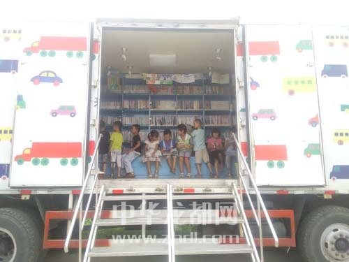 ????本報(bào)訊 8月22日,一輛帶著5000多冊兒童讀物的流動(dòng)圖書車,從北京來到鄲城縣秋渠鄉(xiāng)希望小學(xué)。該校300多名留守兒童有的上車讀書,有的簽字借閱,都特別高興(如圖)。