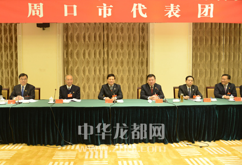 謝伏瞻同志和周口代表團(tuán)成員一起討論省委工作報告。???記者 王映 攝
