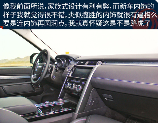 內(nèi)飾趨向家族化設計,與攬勝的內(nèi)飾差不多。特別是在內(nèi)飾的做工和用料依舊保持了奢華的質(zhì)感,只是多了些簡約的味道。高級的材料隨處可見,讓我經(jīng)?;秀蔽沂遣皇情_錯了車,這樣的后果很明顯,讓我對它感覺會越來越溫柔,要是開著它去與風沙、泥土、亂石或大漠相約,我怎么能舍得?