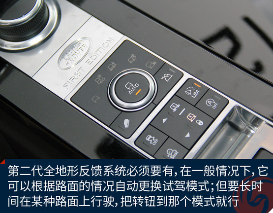 第二代全地形反饋系統(tǒng)必須有,它的特點是在任何非AUTO模式下,且車速低于50公里/時,車身會自動升高75毫米,以此應對復雜越野需求。而全地形反饋系統(tǒng),同時能夠提升車輛的發(fā)動機、變速箱、中央差速器和底盤的性能,使駕駛者可以根據(jù)具體地形選擇合適的駕駛模式。