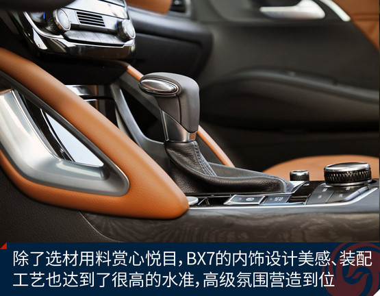 BX7的隔音材料總體夠足料,光在車門上就鋪設(shè)了兩個整圈+窗框上多半圈的密封隔音膠條,在這一價位的車型里絕對厚道。底盤的厚重感剛才提到了,高速行駛時無論風(fēng)噪還是輪胎噪音,抑或發(fā)動機噪音都挺有節(jié)制的,稍微來點音樂就能掩蓋掉,因此這個車跑高速公路是讓人心情愉悅的,車內(nèi)安靜,而且非常平穩(wěn)。