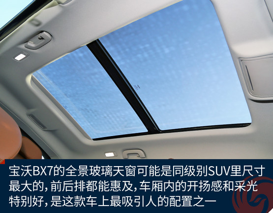 BX7是一款同時擁有5座、6座和7座布局的SUV車型,這款長度超過4.7米的SUV的確有能力在行李廂布置第三排座椅。不過這次我們試駕的車型仍是五座配置,對于這樣尺寸級別的SUV前后排空間自然都不是問題,相當(dāng)寬闊而且乘坐感非常舒服。旗艦版的配置亦相當(dāng)豐富,三溫區(qū)自動空調(diào)和前后排座椅加熱,以及同級別堪稱無敵的超大全景天窗,在配置方面很有吸引力,而再一次綜合其價格來看,明顯優(yōu)于同級別平均水平的標(biāo)準(zhǔn)配置再一次詮釋了“觸手可及的豪華”這一產(chǎn)品理念。