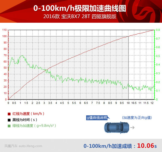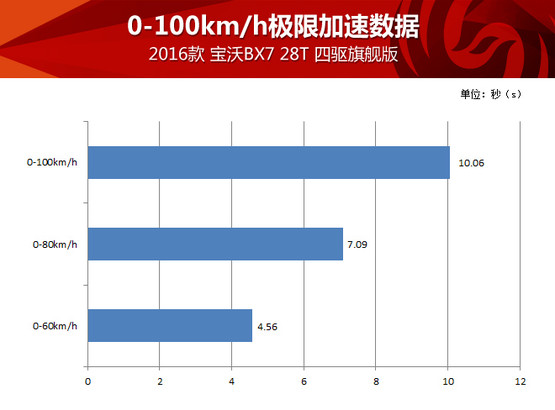 由于有四驅(qū)系統(tǒng)保障,寶沃BX7四驅(qū)版車型在全力加速起步瞬間非常平穩(wěn),6AT變速器換擋還是平穩(wěn)優(yōu)先,所以全力加速時升檔也沒有太明顯的頓挫、動力中斷或者不平順,整個過程很舒服,而10秒出頭的測試成績對于這臺2.0T動力的中型SUV也很不錯,請別忘了因為與變速器的匹配,這臺2.0T發(fā)動機的扭矩被限制在300牛頓·米,也就是說這臺“高功率”發(fā)動機其實并沒使出全力,我們完全有理由相信解除封印后它理應(yīng)跑得更快。