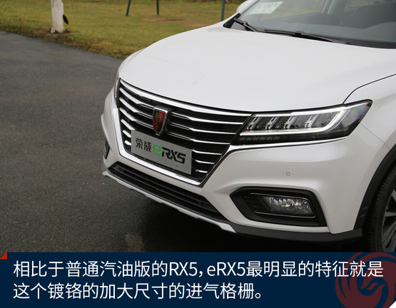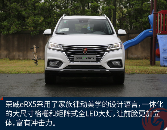 榮威eRX5的外觀設計來自于上汽榮威家族最新的“律動設計”語言,整體外觀呈現(xiàn)出的是“鯨頭燕尾”的特點。通過車頭下壓、腰線勾勒、尾部內切等設計,詮釋了“律動”的美學理念。與汽油版RX5相比,車頭的鍍鉻前格柵尺寸更加大,造型更為舒展,與大燈融為一體。eRX5基于RX5采用的SSA+平臺打造,提供了插電版與純電版兩個版本,這兩款車實際幾乎是同時開發(fā)的,尺寸方面更是一模一樣。插電版的eRX5車身兩側分別為加油口和充電口,純電動續(xù)航60公里,綜合續(xù)航650公里。車身隨處可見新能源的標識,并且還擁有新能源的專屬顏色銀葉金。