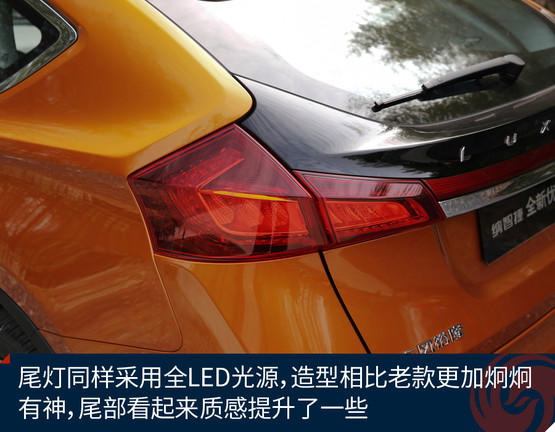 車身的側(cè)面依然是溜背的造型,這也是這臺車最大的特點。車尾的造型也基本沒有太大的變化,但是細看卻有著質(zhì)一般的飛躍,車燈為全紅色,車標變成了“納智捷”的英文字母,牌照架周邊的質(zhì)感明顯比老款好看了許多,不過個人對這個左右貫穿的紅色裝飾保留意見,認為沒有它或許更好。