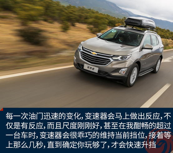 日常駕駛時(shí)的平順已讓我有些驚訝,而我進(jìn)一步試著去挑逗油門(mén)時(shí),探界者給了我更大的驚喜,每一次油門(mén)迅速的變化,變速器會(huì)馬上做出反應(yīng),不僅是有反應(yīng),而且尺度剛剛好,甚至在我酣暢的超過(guò)一臺(tái)車時(shí),變速器會(huì)很乖巧的維持當(dāng)前擋位,接著等上那么幾秒,直到你又安靜地做回美男子之后,才會(huì)快速的升到合適的擋位,這種高度的默契感是原來(lái)國(guó)產(chǎn)的雪佛蘭車上未曾見(jiàn)到的。