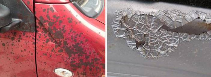 ????????酸性的雨水落到車上,雨水會被蒸發(fā),但酸性的物質(zhì)可能還會留在你的車身表面,時間一長便會腐蝕你的車漆。