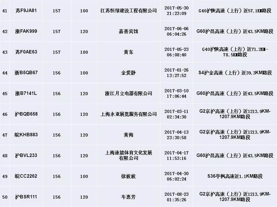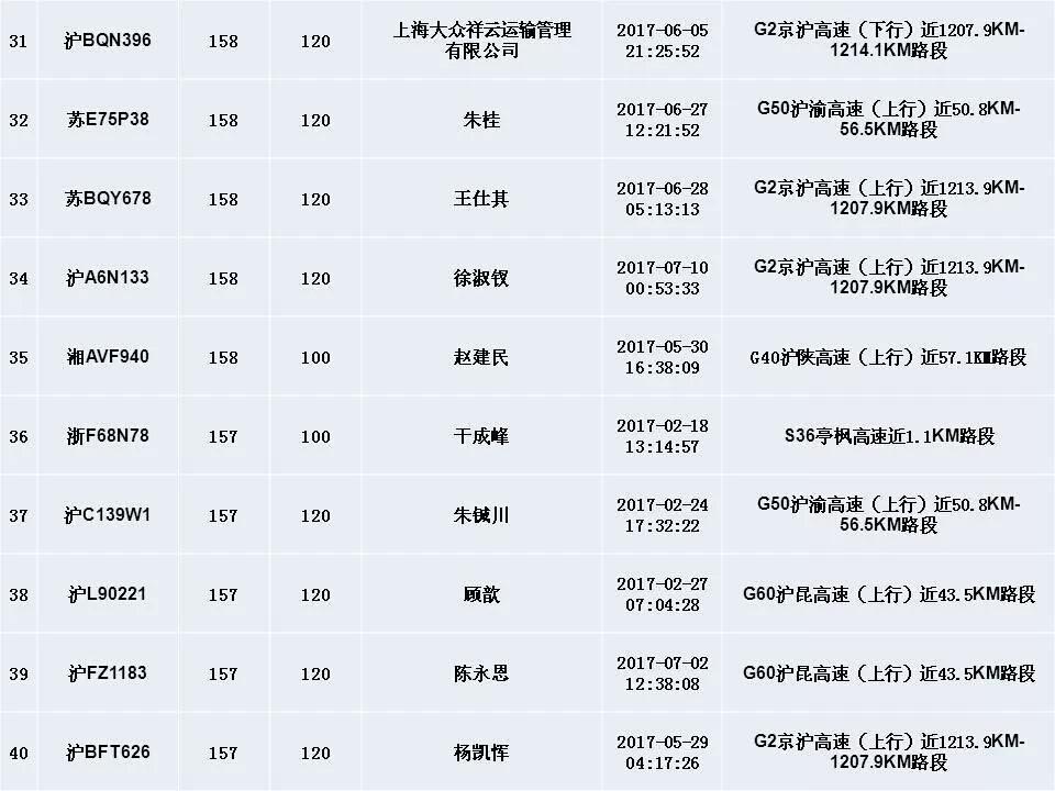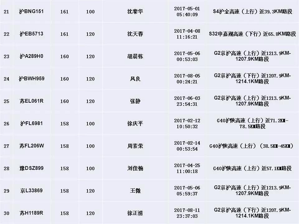 ????滬交警曝光超速前五十名單,瑪莎拉蒂179km/h“奪魁”