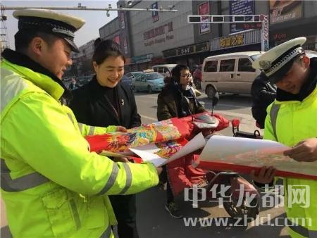 中華龍都網(wǎng)訊(周口報業(yè)全媒體本報記者 韋偉 通訊員王向靈 郭力銘)“這位大姐,剛才紅綠燈時您能按時等候,這是對您的獎勵。”2月8日上午,記者在沈丘縣街頭看到,面對遵守法規(guī)、文明出行的市民王女士,交警劉濤給她送上一套紅紅的新春對聯(lián)。