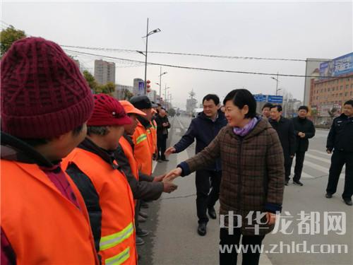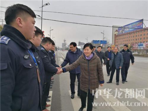 在鄲城縣城新華路與迎賓大道路口,羅文閣、李全林和一線值勤的環(huán)衛(wèi)工人、城管隊員一一握手,深切關(guān)心環(huán)衛(wèi)工人和城管隊員的冷暖?!翱词侄鄾?,要穿厚點兒呀。大年三十了,你們放棄和家人團圓吃餃子的機會,在為我們的縣城保潔,我們城市的清潔有賴于你們。你們辛苦了,給你們拜個年,祝你們身體健康。”羅文閣向環(huán)衛(wèi)工人遞上慰問金時,樸實的話語、殷殷的關(guān)懷把黨的溫暖涌向環(huán)衛(wèi)工人的心窩兒?!安恍量?,領(lǐng)導(dǎo)來看俺,俺里比吃餃子暖和?!杯h(huán)衛(wèi)工人邊鼓掌邊道出了內(nèi)心的激動。