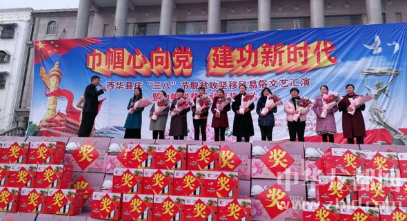 3月5日,西華縣舉辦慶“三八”婦女節(jié)脫貧攻堅移風(fēng)易俗文藝會演,對64名優(yōu)秀女性和3個團體進(jìn)行了表彰。記者姬慧洋攝