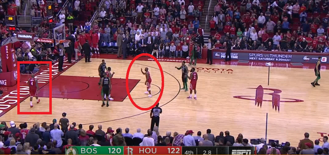 在比賽進行到最后2.8秒的時候火箭只領(lǐng)先綠軍2分,這也就是說什么事情都可能會發(fā)生。而在這個時候火箭發(fā)邊線球,就當(dāng)火箭要發(fā)球的時候我們從上圖可以看到有6名球員在場上,而這個時候大局觀智商高超的保羅一眼就看了出來,他先是對著塔克大喊出去不過這時的塔克依舊慢慢悠悠,而這時的保羅都已經(jīng)跳了起來怒吼塔克讓其趕快出去。不得不說如果不是保羅這智商這大局觀一旦火箭發(fā)出球來那么無疑就是一個技術(shù)犯規(guī),那么最終火箭能不能取得勝利就真的不好說了。