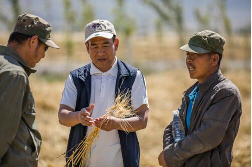 2017年9月是新疆哈密的小麥?zhǔn)崭罴荆珖舜蟠?、治土人黨永富在田間考察化肥減量、農(nóng)業(yè)提質(zhì)的實際效果。