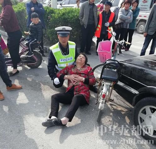 中華龍都網(wǎng)訊(周口報(bào)業(yè)全媒體記者 徐松 通訊員 王中華)3月29日上午9時(shí)許,鄲城縣交警大隊(duì)交警閆邵梁、潘俊飛、肖冰冰正在新華路府西路路口執(zhí)勤,突然一輛黑色轎車與一位騎自行車的老人發(fā)生碰撞,發(fā)生碰撞后騎自行車的老人當(dāng)時(shí)趴在自行車上,不能動(dòng)彈。