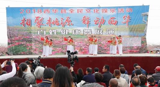 中華龍都網(wǎng)訊(周口報業(yè)全媒體記者 張猛)在西華縣第十四屆桃花節(jié)期間,由縣委宣傳部、縣文廣新局主辦的“相聚桃源 舞動西華”百姓健康舞展演活動,在黃橋鄉(xiāng)萬畝桃園舉行,來自全縣的10 余支舞蹈隊參加展演。活動吸引眾多市民、游客前來觀看。