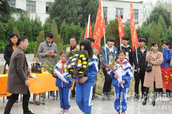 隨后,學(xué)生代表向烈士敬獻花籃,全體人員給烈士紀(jì)念碑敬獻了小白花,并鞠躬默哀,以此寄托對革命先烈的深深敬意和無限哀思。之后,少先隊員們在老師的帶領(lǐng)下,重溫了入隊誓詞。