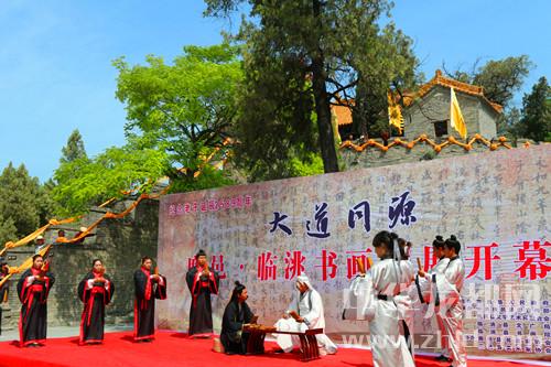 中華龍都網(wǎng)訊(周口報(bào)業(yè)全媒體記者 李瑞才/文 通訊員 陳興有/圖)5月4日上午,“大道同源”——鹿邑·臨洮書(shū)畫(huà)聯(lián)展活動(dòng)在鹿邑縣明道宮景區(qū)開(kāi)幕。此次活動(dòng)由甘肅省臨洮縣人民政府和鹿邑縣人民政府共同舉辦,精選兩地137位書(shū)畫(huà)藝術(shù)家140余幅作品在鹿邑展出。鹿邑縣領(lǐng)導(dǎo)武衛(wèi)東、劉銀、宋克言、王玉超和臨洮縣委常委、宣傳部長(zhǎng)郭志萍等出席開(kāi)幕式。