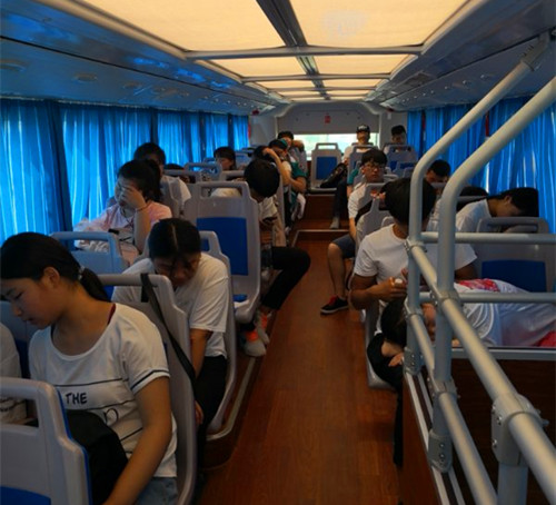 周口市文昌中學(xué)考點(diǎn)地處較為偏僻,考點(diǎn)周邊公共服務(wù)設(shè)施較少,市公交總公司投入兩輛雙層空調(diào)公交車作為公交空調(diào)休息車,從早上8時(shí)開(kāi)放至下午5時(shí),專供考生及其家長(zhǎng)候考使用。為了給考生加油打氣,兩輛雙層公交都拉上高考祝福標(biāo)語(yǔ)“天王蓋地虎全考985,寶塔鎮(zhèn)河妖全上211”、“今年考生特別牛,全部都上雙一流”。兩個(gè)詼諧幽默的標(biāo)語(yǔ),給考場(chǎng)外帶來(lái)一些輕松氣氛,緩解考生和家長(zhǎng)的緊張情緒,也給考場(chǎng)外增添了樂(lè)趣。