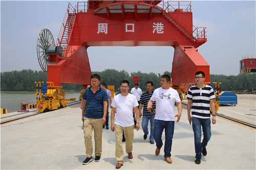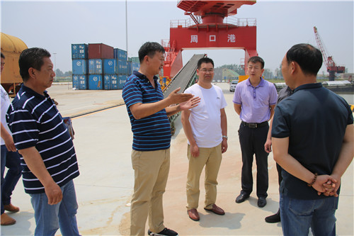 當(dāng)天上午,宿遷市港口發(fā)展有限公司董事長尤勇、江蘇連云港灌河港國際港務(wù)有限公司副總經(jīng)理鄒平海攜公司人員來到周口中心港碼頭,尤勇、鄒平海一行首先參觀中心港碼頭4#5#港池,周口中心港碼頭運(yùn)營辦主任段傳奇向他們詳細(xì)介紹了碼頭運(yùn)營現(xiàn)狀、吊裝設(shè)備使用情況、圍繞周口中心港打造的多式聯(lián)運(yùn)建設(shè)進(jìn)度和長遠(yuǎn)規(guī)劃。