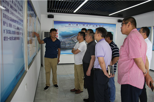 離開碼頭,考察團(tuán)來到中心港碼頭展廳,段傳奇向他們介紹了周口市委、市政府發(fā)展臨港經(jīng)濟(jì)、打造中原港城的戰(zhàn)略規(guī)劃,以及在全市發(fā)展戰(zhàn)略下,周口港區(qū)加大招商引資、發(fā)展多式聯(lián)運(yùn)、打造臨港產(chǎn)業(yè)園區(qū)做出的一系列發(fā)展舉措。