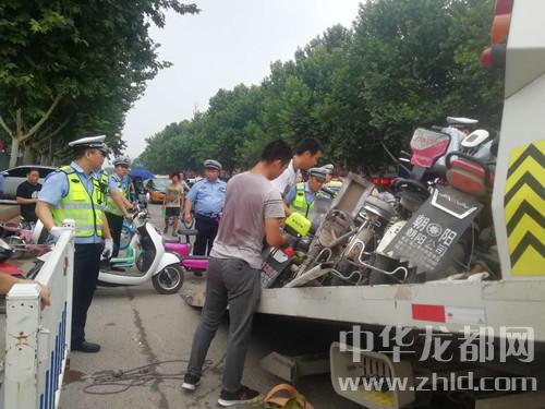 中華龍都網訊 (周口報業(yè)全媒體記者 姬慧洋 陳永團 文/圖)清理違停非機動車、拖走僵尸車、向違停違章機動車輛開出罰單……7月5日,我市中心城區(qū)交通秩序整治“百日行動”首出重拳,對市民深惡痛絕的幾種交通亂象進行治理,拖走非機動車輛76輛,清理“僵尸車”2臺,對多臺違停車輛進行處罰。