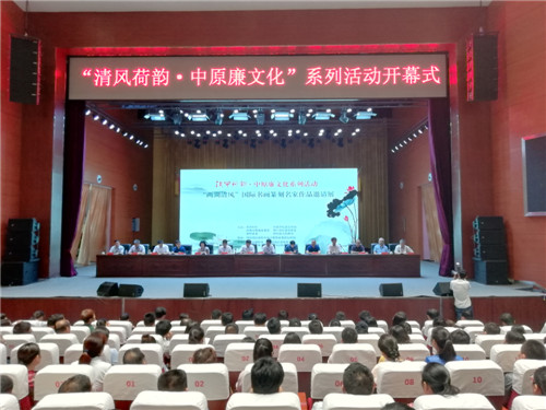 7月24日上午,“清風(fēng)荷韻·中原廉文化”書畫篆刻名家作品展暨國家治理名家大講堂等系列活動在淮陽縣舉行。省紀(jì)委監(jiān)察委宣傳部長袁勇、省社科院黨委副書記周立、河南日報報業(yè)集團(tuán)大河網(wǎng)總編輯孟磊、中央黨?!秾W(xué)習(xí)時報》副總編輯楊英杰及淮陽縣委書記馬明超、縣長王毅等出席?;顒佑墒形N⒓o(jì)委書記、監(jiān)察委主任劉孟連主持。