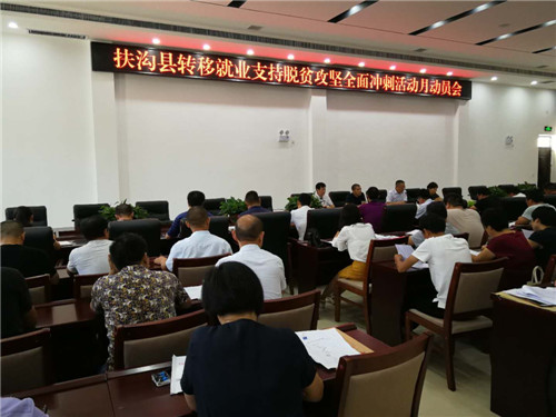 為貫徹落實(shí)“扶溝縣脫貧攻堅(jiān)全面沖刺誓師大會”精神,確保完成2018年轉(zhuǎn)移就業(yè)支持脫貧攻堅(jiān)任務(wù),8月8日上午,扶溝縣召開轉(zhuǎn)移就業(yè)支持脫貧攻堅(jiān)全面沖刺活動月動員會,縣領(lǐng)導(dǎo)張峰、魏軍占、郭功用出席會議。