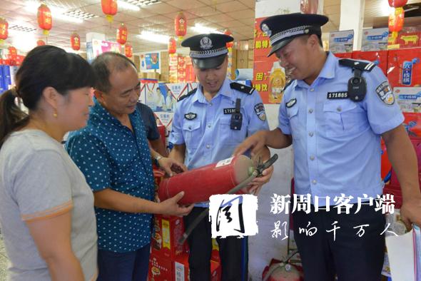 針對高溫天氣火災(zāi)易發(fā)實(shí)際,扶溝縣公安局呂潭派出所深入開展火災(zāi)隱患排查整治、消防宣傳教育培訓(xùn),從源頭上消除火災(zāi)隱患。圖為8月13日,民警正在檢查超市消防設(shè)施,講解消防常識。