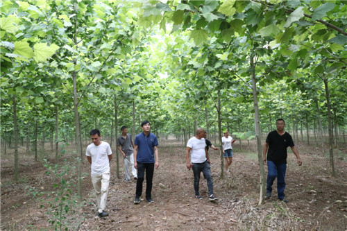 與前廟相鄰的大張村,是一個“天然大氧吧”。從大張村走出來的曹紅星在鄭州從事園林綠化多年,在朱口鎮(zhèn)黨委、鎮(zhèn)政府的支持和鼓勵下,他以1000元/畝的價格流轉(zhuǎn)了1000多畝土地,種植法桐、欒樹、國槐等綠化樹。有著豐富經(jīng)驗的曹紅星在種植綠化樹的同時,積極發(fā)展林下經(jīng)濟,在綠化樹下種植紅薯、大蒜等,有效提高了土地的利用率,經(jīng)濟效益顯著提高?!捌綍r,綠化林地除草、抗旱、施肥需要用工,收種紅薯、大蒜等也需要用工,用工時貧困戶優(yōu)先。只要有勞動能力,來這里就能掙錢。”曹紅星說,林業(yè)經(jīng)濟的快速發(fā)展為鄉(xiāng)親們脫貧致富提供了保障。