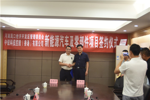 9月5日,周口經(jīng)濟(jì)開發(fā)區(qū)與中銳科技控股(香港)有限公司就新能源汽車及零部件項(xiàng)目建設(shè)成功簽約。開發(fā)區(qū)黨委書記田林、管委會主任王文峰、管委會副主任支利民,中銳科技控股(香港)有限公司董事長張健源、中銳電源公司總經(jīng)理王力和等出席簽約儀式。