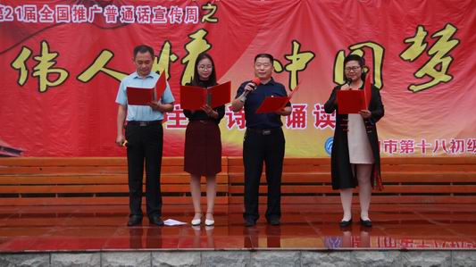 周口十八中、鄲城第二實驗中學(xué)舉辦了推普周誦讀比賽,在比賽中學(xué)校倡議全體師生立即行動起來,從自身做起,從現(xiàn)在做起,人人講普通話,時時講普通話,處處講普通話。扶溝縣實驗小學(xué)舉行了推普周主題升旗儀式,向?qū)W生介紹了推廣普通話和使用規(guī)范字的意義。據(jù)了解,周口市各縣區(qū)都開展了相應(yīng)的主題班會、書法比賽、街頭宣傳等推普周主題活動。