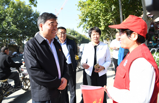10月10日上午,市委書記、七一路路長劉繼標(biāo)到分包道路七一路調(diào)研督導(dǎo)市容環(huán)境。記者 王映 攝