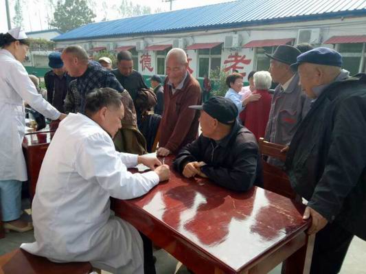 在秋日陽(yáng)光的沐浴下,敬老院的院民們把專(zhuān)家和護(hù)士們圍得水泄不通。經(jīng)過(guò)專(zhuān)家和護(hù)士們的辛苦診治,為全院170多院民進(jìn)行了體檢和診治,受到院民的一致好評(píng)。