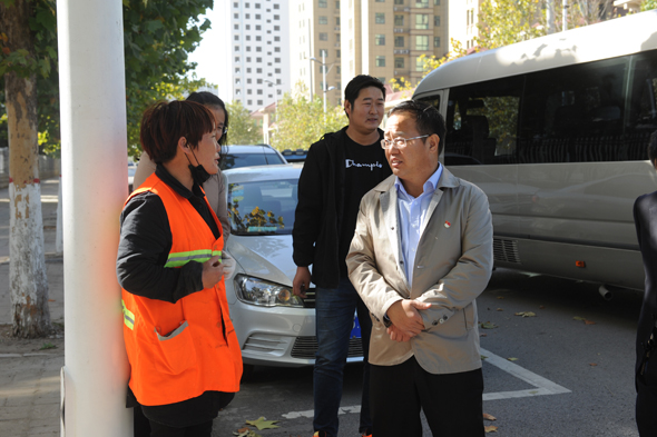 督導(dǎo)中,張建黨親切地與環(huán)衛(wèi)工人進行交談,了解他們的工資收入狀況及是否買了人身保險等情況,并勉勵他們一定要盡職盡責(zé),當(dāng)好城市的“美容師”。