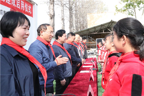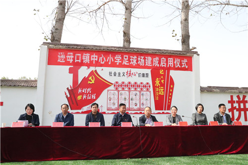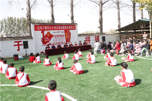 啟用儀式上,該縣遜母口鎮(zhèn)中心小學(xué)的學(xué)生們愉快地表演了足球操,少先隊(duì)員分別向領(lǐng)導(dǎo)和嘉賓佩戴紅領(lǐng)巾表達(dá)感恩之情。河南省第十三屆人大代表張華女士代表足球場捐建單位講話。張華說,當(dāng)前,隨著脫貧攻堅(jiān)深入開展,家鄉(xiāng)的各項(xiàng)事業(yè)蓬勃發(fā)展。作為遜母口鎮(zhèn)的一員,看到家鄉(xiāng)這些年翻天覆地的變化,感到特別喜悅。作為一名省人大代表,為助力家鄉(xiāng)脫貧攻堅(jiān),同時(shí)落實(shí)“脫貧攻堅(jiān)人大代表在行動(dòng)”號召,便決定投資50萬元為遜母口鎮(zhèn)中心小學(xué)建立一個(gè)高標(biāo)準(zhǔn)的踢足場,滿足孩子們踢足球的愿望。