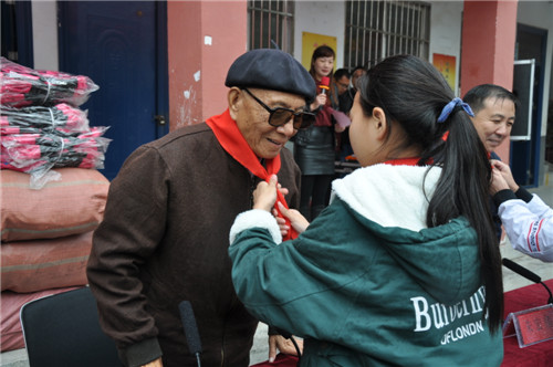 瑟瑟寒風(fēng)抵擋不住火熱愛(ài)心,毛毛細(xì)雨阻擋不了赤子情懷。愛(ài)心助學(xué)現(xiàn)場(chǎng),于學(xué)龍不顧高齡,除了給孩子們送去愛(ài)心禮物之外,還站在雨中分享了自己的成長(zhǎng)經(jīng)歷,教育孩子們要學(xué)會(huì)刻苦、學(xué)會(huì)拼搏,還要懂得感恩和奉獻(xiàn)。