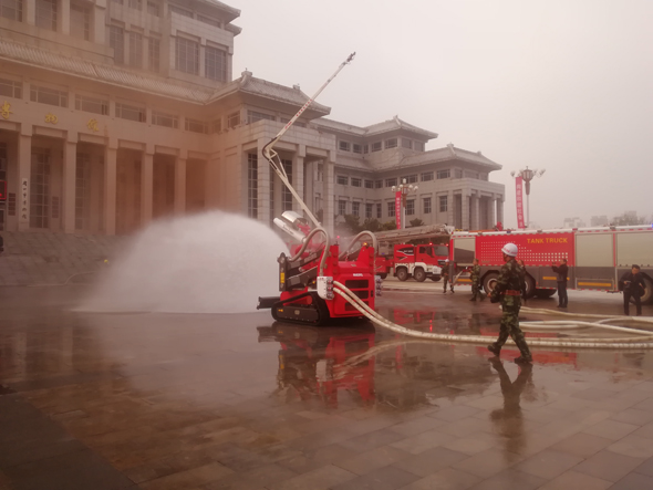 無人機、消防機器人、53米云梯消防車紛紛亮相