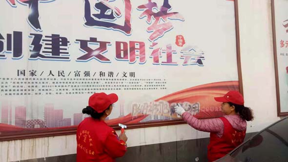 前來參加活動的劉愛青和岳巧玲兩位老人今年都是61歲,她們在清理小廣告的時候,動作麻利,做事認真,直到把每一個小廣告清理的干干凈凈才才肯罷手。