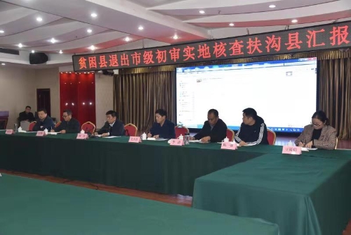 12月3日,貧困縣退出市級(jí)初審實(shí)地核查扶溝縣匯報(bào)會(huì)召開(kāi)。市級(jí)初審第一實(shí)地核查組組長(zhǎng)劉哲,副組長(zhǎng)毛立營(yíng)、王啟輝、李濤、齊長(zhǎng)軍、陳強(qiáng),監(jiān)督員周萌,聯(lián)絡(luò)員豆筱倩,扶溝縣領(lǐng)導(dǎo)盧偉、張峰、段然、趙紅亮等出席會(huì)議??h委副書(shū)記、政法委書(shū)記張峰主持會(huì)議。