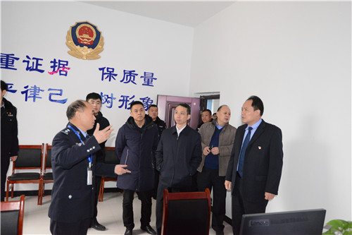 調研組一行深入鹿邑縣公安局新辦公業(yè)務用房工地、執(zhí)法辦案中心、高集派出所新址等處實地調研基層建設工作。鹿邑縣副縣長、縣公安局長何新敏介紹了2018年鹿邑公安整體工作以及高質量公安建設有關情況。