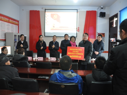 作為河南省人民檢察院的直屬學(xué)校,河南檢察職業(yè)學(xué)院也積極參與瓦房莊的脫貧攻堅(jiān)工作。在當(dāng)日舉行的河南檢察職業(yè)學(xué)院文化扶貧啟動(dòng)儀式上,他們不僅送來(lái)了精彩的黨課,還為該村小學(xué)捐贈(zèng)現(xiàn)金5萬(wàn)元,用于村小學(xué)操場(chǎng)硬化,改善辦學(xué)條件。