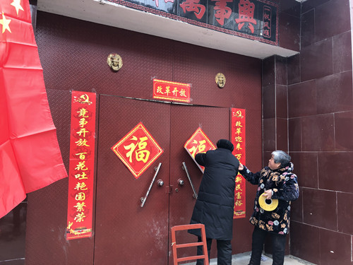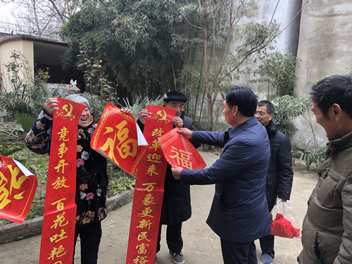 據(jù)了解,當(dāng)天下午時(shí)莊村黨支部訂制的3000多套春聯(lián),免費(fèi)贈(zèng)給448戶村民。記者看到,這些春聯(lián)的內(nèi)容都是承載著黨和政府的關(guān)懷,有的是歌頌改革開放的,有的是幸福報(bào)黨恩的。該村村民朱在靈領(lǐng)到春聯(lián)后立刻把春聯(lián)拿回家,他將門頭擦干凈后把春聯(lián)貼了上去。在門口懸掛著的國旗的襯托下,顯得格外喜慶?!按謇锩赓M(fèi)發(fā)這種帶黨徽的春聯(lián)已經(jīng)第三年了,這種春聯(lián)傳遞了黨的好聲音,推動(dòng)了群眾對(duì)黨的擁護(hù),現(xiàn)在村民的精神面貌也貌煥然一新?!敝煸陟`高興地說。