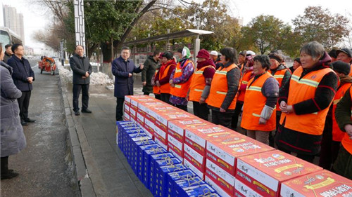 慰問中,皇甫立新、劉國慶一行首先來到新區(qū)“三公開”廣場,慰問堅守一線的環(huán)衛(wèi)工人,向他們致以新春的祝福,并對他們在過去一年里付出的辛勤勞動表示衷心感謝?;矢α⑿轮赋?,一年來,環(huán)衛(wèi)工人們起早貪黑、兢兢業(yè)業(yè),為改善居民生活環(huán)境和提升城市形象付出很多心血和汗水,取得了良好效果,城區(qū)環(huán)境和城市面貌有了很大改善,得到了社會各界的一致好評,希望環(huán)衛(wèi)工人們在春節(jié)期間繼續(xù)發(fā)揚奉獻精神,把縣城衛(wèi)生打造的更加干凈、整潔,讓廣大市民和回家過年的群眾能深刻感受到縣城環(huán)境的新變化,過一個干凈舒適愉快的春節(jié)。