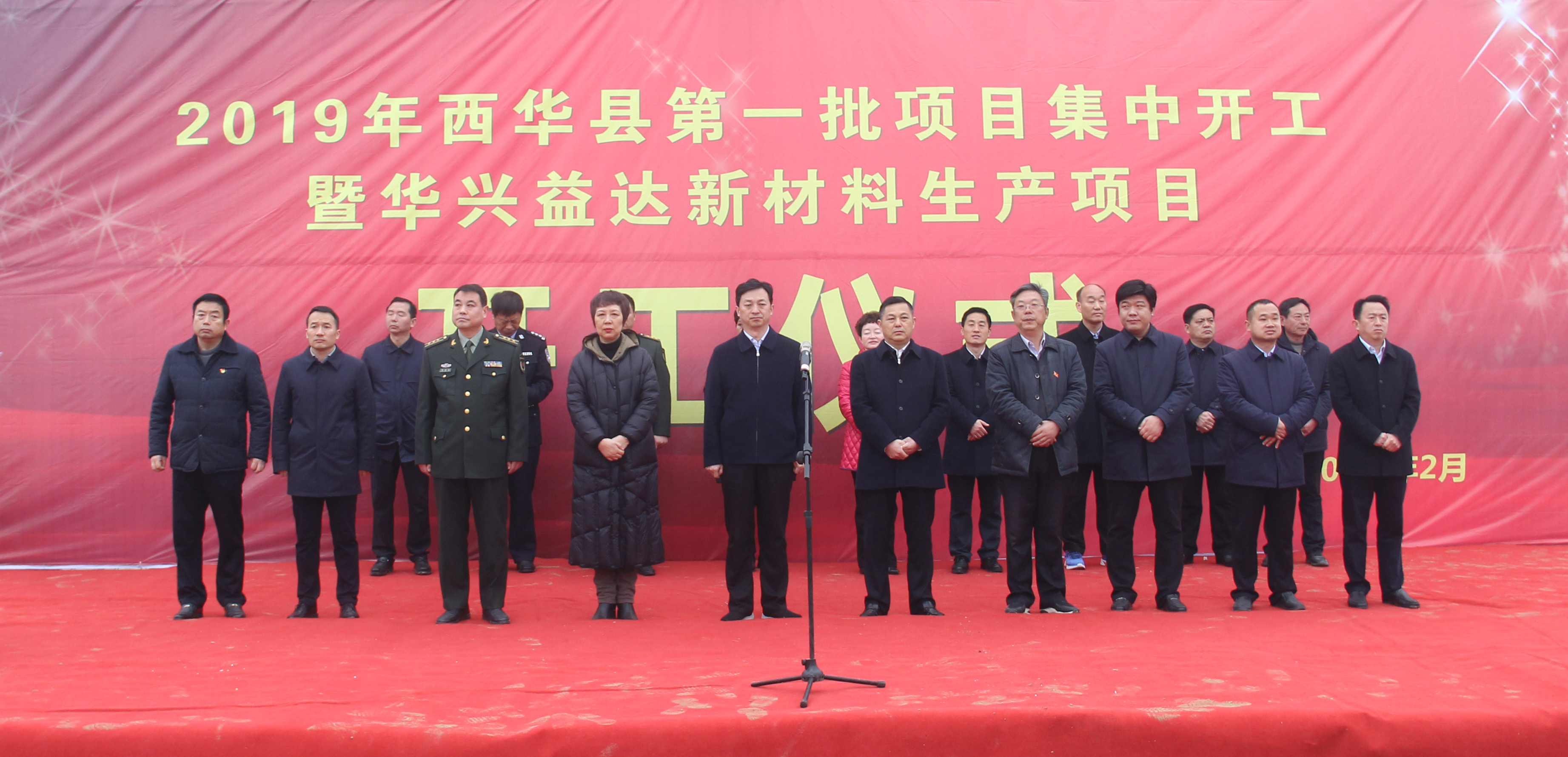 2月26上午,西華縣2019年第一批項目集中開工儀式在華興益達新材料生產(chǎn)項目建設(shè)工地舉行??h領(lǐng)導(dǎo)林鴻嘉、田慶杰、周曉燕、郭峰、胡軍華、李濤、郝清俊、王獻超、張曉偉、楊鳳臣、王衛(wèi)東及其他縣處級領(lǐng)導(dǎo)干部出席開工儀式,各鄉(xiāng)鎮(zhèn)辦及縣直各部門主要負(fù)責(zé)同志,各項目施工單位代表參加開工儀式。