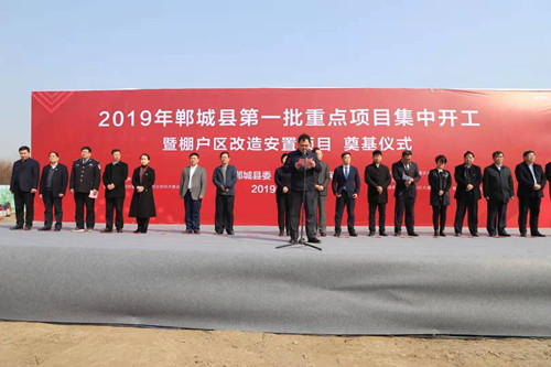 3月6日上午,鄲城縣舉行2019年全縣第一批重點項目集中開工暨棚戶區(qū)改造安置項目開工奠基儀式??h委書記羅文閣,河南中原建業(yè)城市發(fā)展有限公司董事長陳建業(yè),總裁馬驍騰,縣長李全林,縣人大常委會主任李建軍,縣政協(xié)主席姜永來,縣委常委、常務副縣長王智華等出席開工儀式。