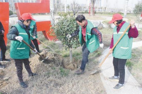 園林工人正在補(bǔ)栽苗木。
