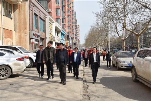 3月26日上午,川匯區(qū)政協(xié)主席張劍鋒,黨組副書記、副主席梁顯棟,副主席王建國(guó)、馬淮海到建安路檢查督導(dǎo)“市容工作日”活動(dòng)開展情況。七一路辦事處主任王峰陪同檢查。